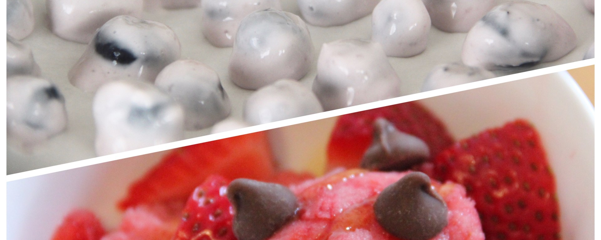 I just took a Buzzfeed quiz to see what my favorite dessert was, and my result was fruit. SO TRUE. Fruit may seem boring, but you can always transform them into delicious snacks while still completely retaining their nutrition. Today I’m showing you how to make blueberry yogurt drops and strawberry nice cream. Keep on reading!