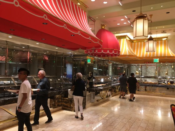 And about conservation in Vegas? Forget it. For dinner we ate at The Buffet at Wynn. It is a world class buffet, featuring international cuisines prepared by world renowned chefs. After a weeklong diet of sandwiches and granola bars, I sure was ready to indulge in some fine dining. And I did! The dishes ranged from roasted quail enveloped in a flaky crust, to ahi tuna poke bowls. The sirloin steak was seared to perfection. Steaming vegetables were slashed with cool little grill lines. King crab legs piled high on the buffet tables. Artisanal bread tumbled out of the baskets. Each little station featured its own cuisine: Italian, Mediterranean, Chinese, you name it! I got a tiny bit of everything. My experience could be compared to Katniss feeling overwhelmed at the Capitol feast, if you know the Hunger Games.