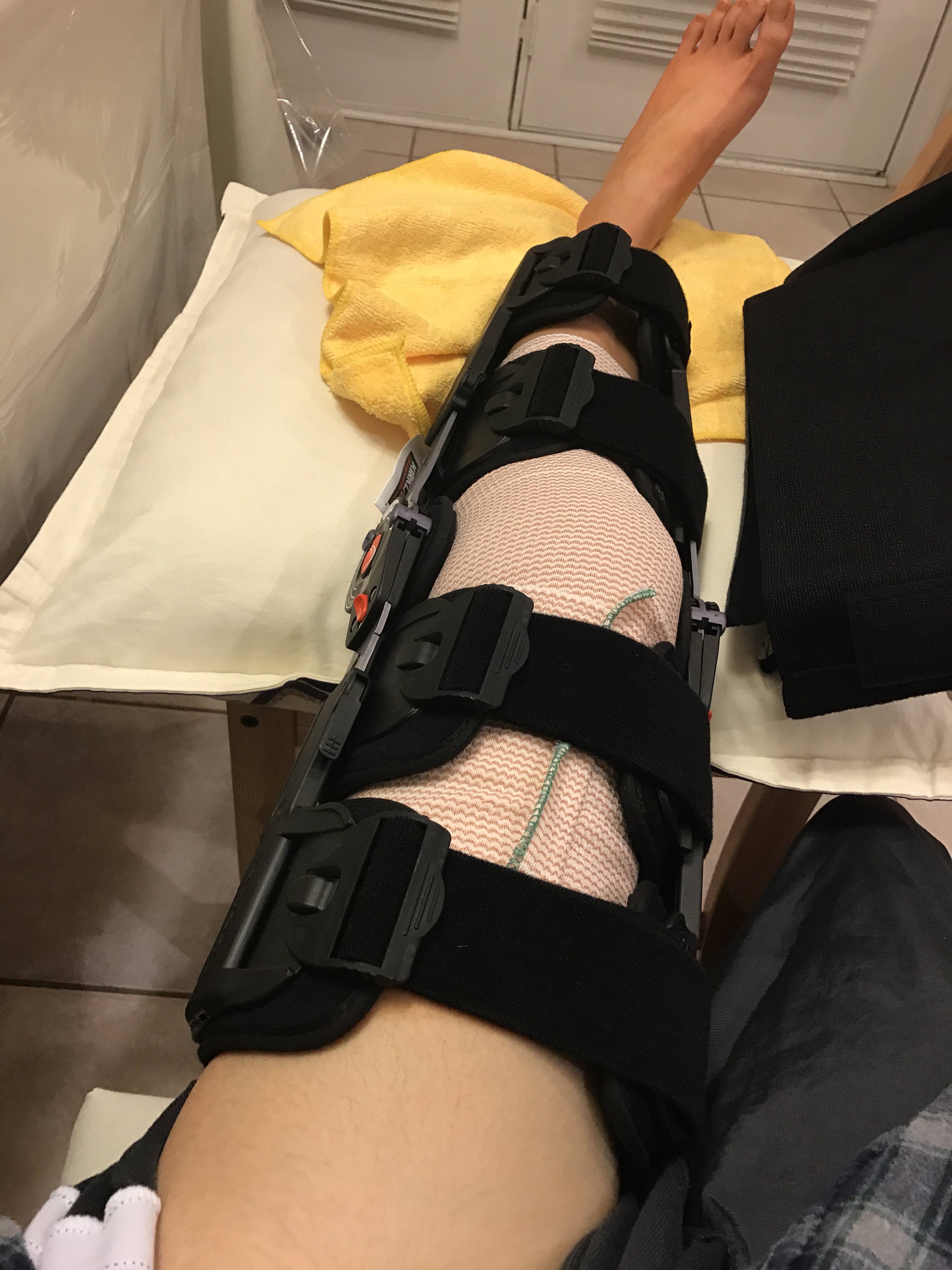 I should also mention that my leg was wrapped in an Ace bandage and fitted into the big fat immobilizer. I couldn‘t feel the inside of my leg, from the lower part of my thigh to a little bit above my ankle.