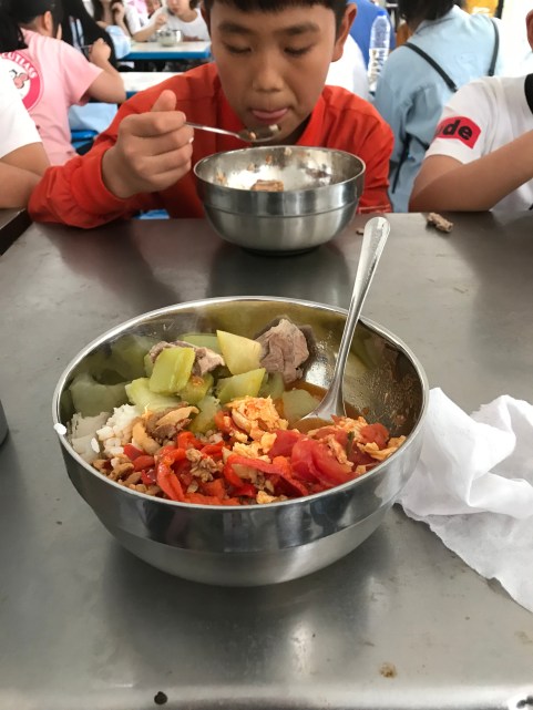 4. School lunches are much more healthy and sustainable than lunches in the US. At Fengming, lunch consisted of rice, vegetables, and some sort of protein like fish, chicken, pork, or eggs. And it was always really tasty! Food was served in metal bowls and we used metal spoons. After we finished eating, we took our food and utensils to an area behind the kitchen, scrape the excess food into a bucket, and put our bowls and spoons in a basin of water and soap. The excess food was used to feed pigs. In the US, though, lunch largely consists of pizza, burgers, and salty deli meat sandwiches served in plastic wraps and cardboard or styrofoam trays, and excess food just becomes garbage.